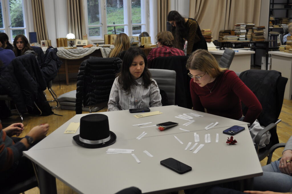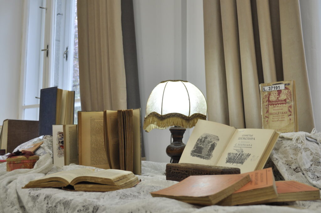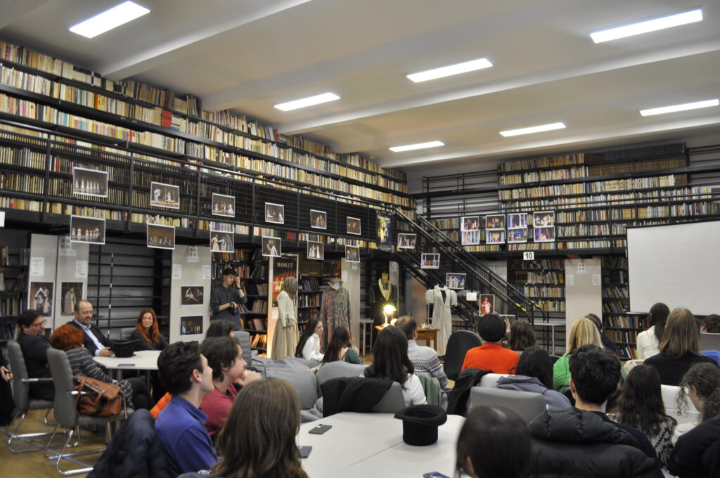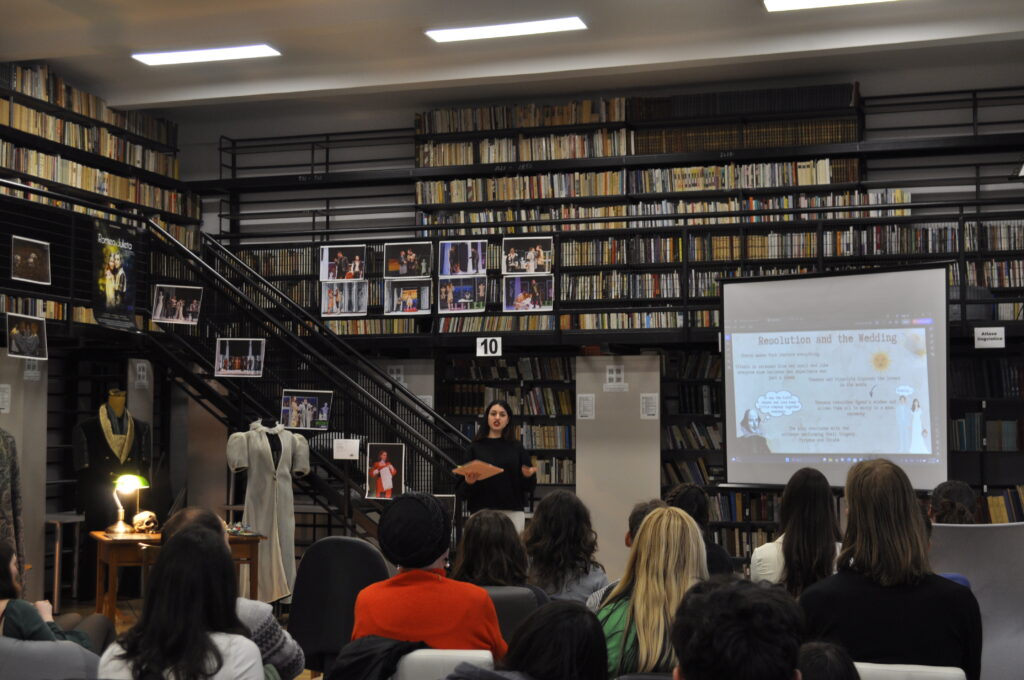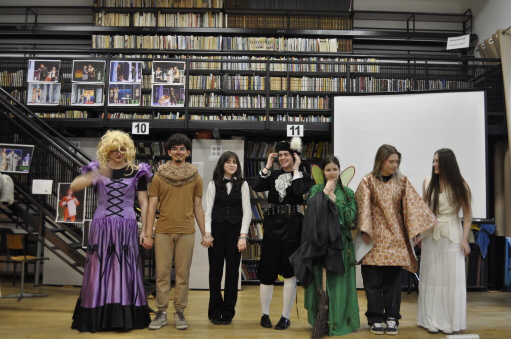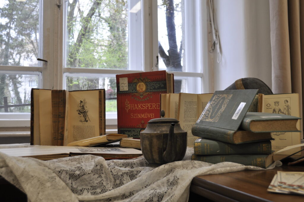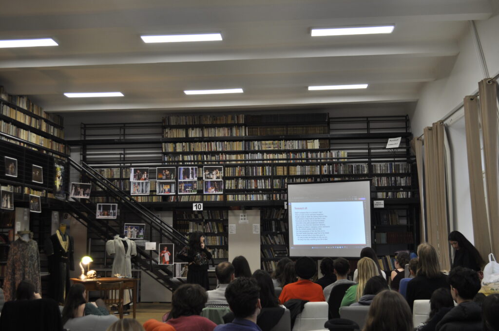 The first event took place on April 2, at 5:00 p.m., in the reading room of the Romanian-Hungarian Library. We prepared a short skit (because Shakespeare must first and foremost be seen), the National Theater lent us a few costumes from their archives for a small exhibition, we listened to a few sonnets, and we admired the superb volumes that the library prepared just for us.